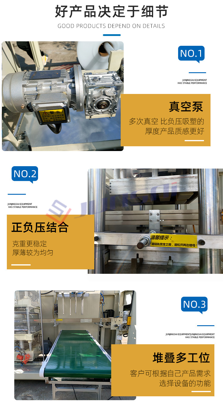 這臺全活躍正負符號壓吸塑機配伍于PS、PVC、PET、PP等塑膠片原料的擠壓鑄造,要把他們拿來出廠特殊盒、碟、碗、光學禮品盒箱、杯蓋等塑膠片不銹鋼容器和禮品盒終產物,如市道上稀有的生果盒、中式糕點盒、冰箱塑料盒、光學通往禮品盒箱、小玩具禮品盒等。